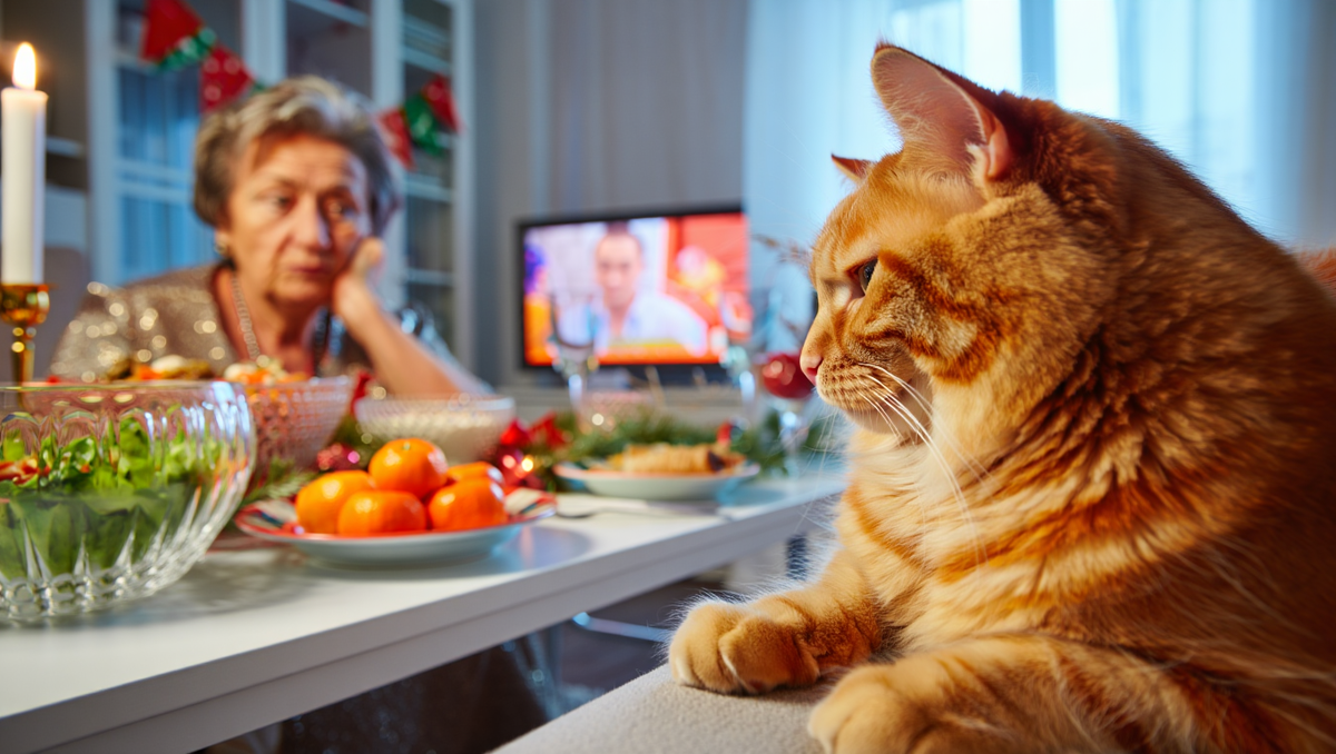 Накрыла стол как для гостей, надела лучшее платье и встретила новый год с котом под телевизор