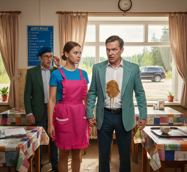 Тамара соскребала присохшую горчицу со стола, когда к дверям «Дорожного» подкатил черный внедорожник. Машина была такой чистой, что в её боку отражались и щербатый асфальт, и покосившиеся сосны. Из салона вышли двое. Первый — в пиджаке, накинутом на плечи, с лицом человека, которому все должны по праву рождения. Второй — щуплый, в нелепом берете, с зажатой под мышкой папкой.