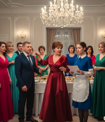 Людмила, нанятая на вечер официантка, старалась не дышать. Она меняла пепельницы, когда Виктор громко, по-хозяйски расхохотался и задел ее локтем. Тяжелый фужер с красным вином опрокинулся прямо на Галину. Багровое пятно мгновенно расползлось по вишневому шелку, превращая королеву вечера в испуганную женщину с мокрым плечом.