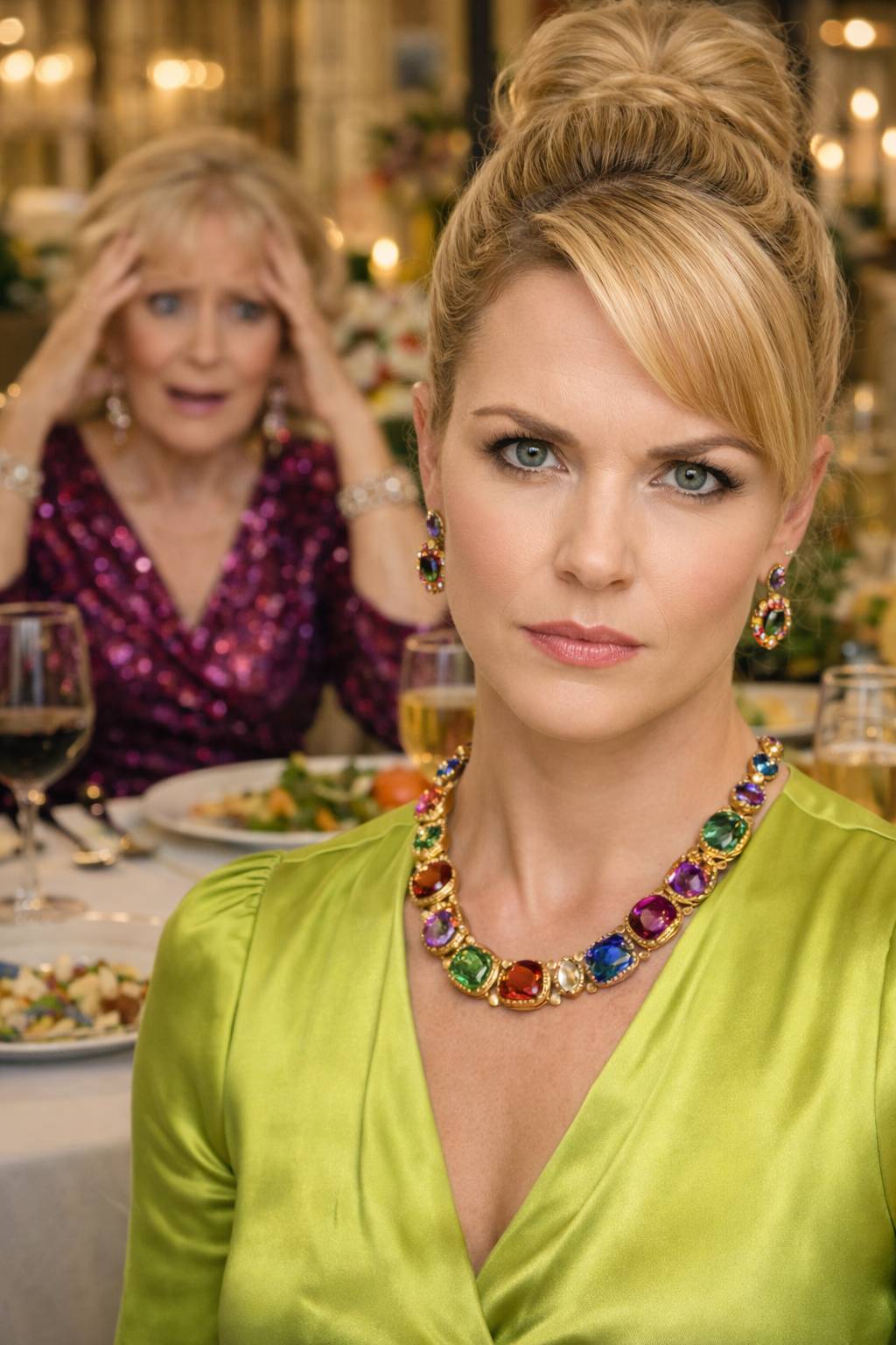 Лидия Сергеевна стояла посреди зала в «шубе за 3000 рублей», багровая, как свекла в борще. Она попыталась скинуть манто, но пуговица запуталась в её кружевном воротнике. Она дергалась, как пойманная птица, под хохот родни.