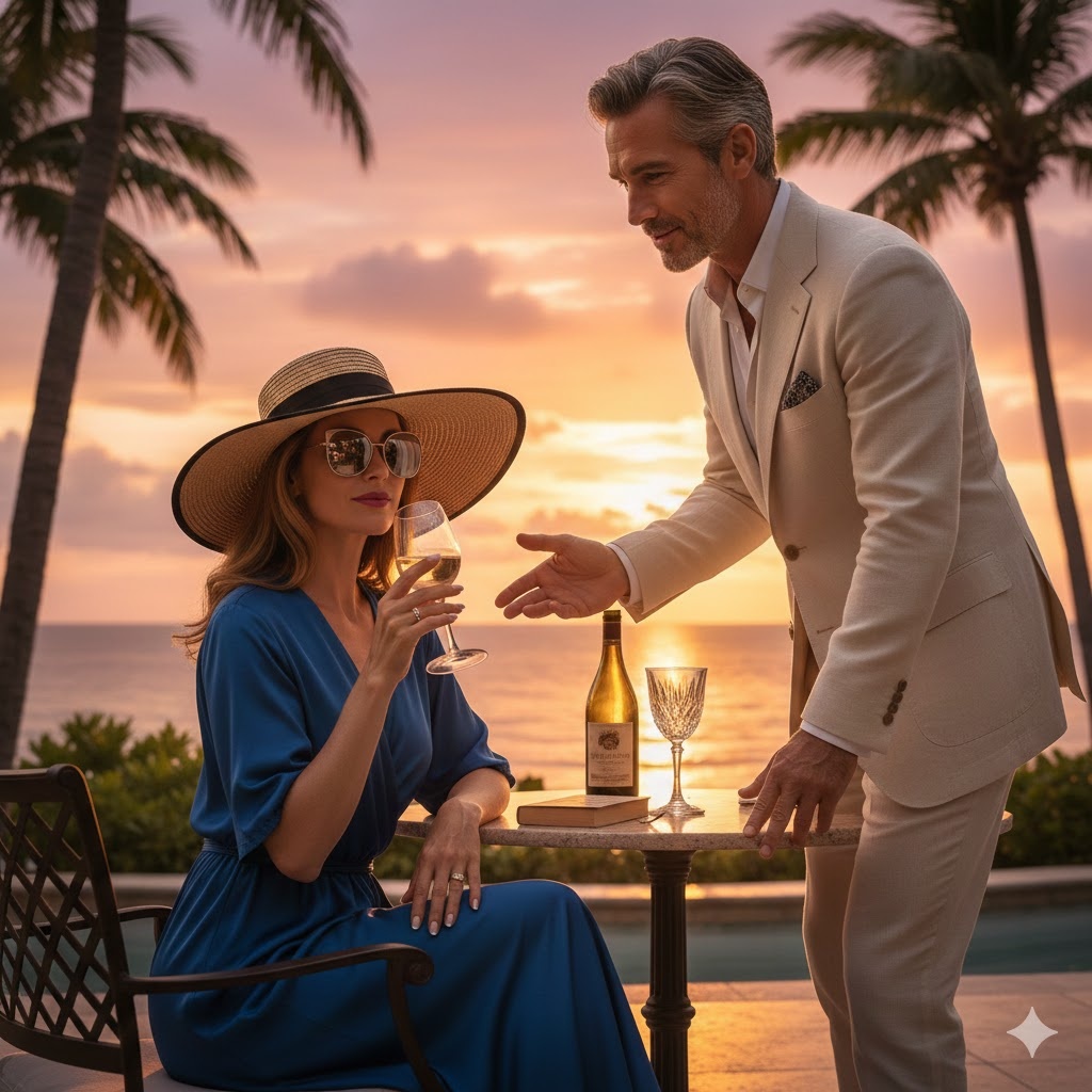 Вечером в ресторане он снова увидел её. Она сидела за столиком у самого края террасы, глядя на закат. Одинокая, неприступная и невероятно манящая. Марк поправил воротник белоснежной рубашки, проверил, идеально ли сидят часы, и решительно направился к её столику.