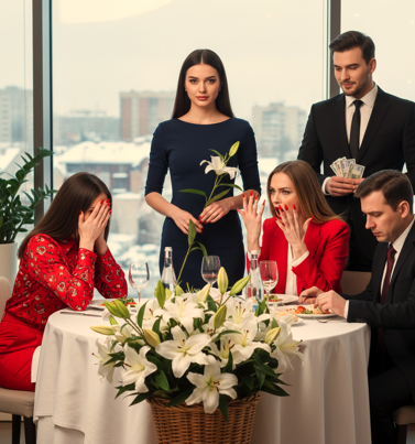Алина медленно встала. Она не кричала, не швыряла деньги в лицо. Она просто взяла одну лилию из корзины.