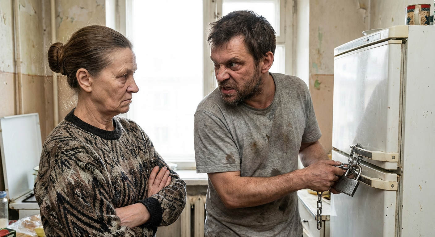 В пятницу ситуация достигла апогея. Галина Ивановна пришла домой и увидела, что Сергей пытается вскрыть замок на холодильнике отверткой. Он так увлекся, что не услышал, как открылась входная дверь.