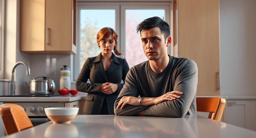Андрей сидел за кухонным столом, упершись локтями в скользкую столешницу, и смотрел на неё снизу вверх, как школьник на завуча. Перед ним остывал ужин — он не притронулся ни к чему, кроме чая. Чашка давно стояла пустая, он машинально крутил её за ручку.