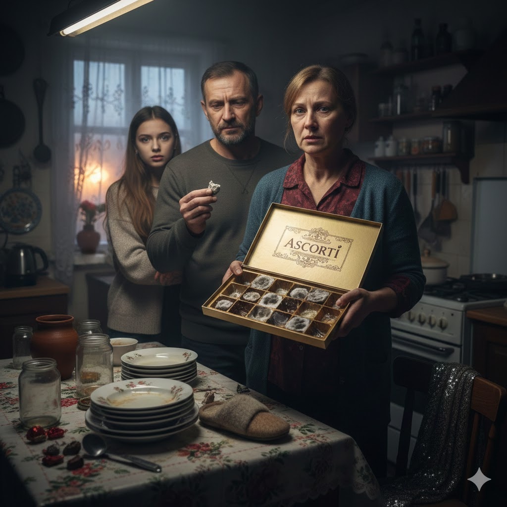 Внутри, в золотистых пластиковых ячейках, конфеты выглядели жалко. Шоколад покрылся густым, седым налетом, похожим на плесень. Но самое страшное было не это. Половина ячеек была пуста. Кто-то — видимо, Тамара или Геннадий в приступе ночного голода — уже вскрывал коробку, надкусывал конфеты и, обнаружив, что они старые и невкусные, бросал их обратно или просто оставлял пустые фантики.