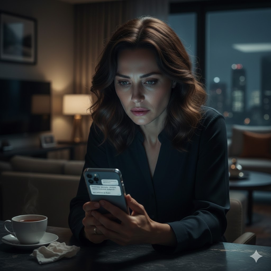 Марина зашла в гостиную, сжимая в дрожащей руке смартфон Вадима. Он забыл его на кухонном острове, когда ушел в душ. Экран вспыхнул от уведомления, и она, поддавшись необъяснимому импульсу, взглянула на текст. Мир рухнул мгновенно.