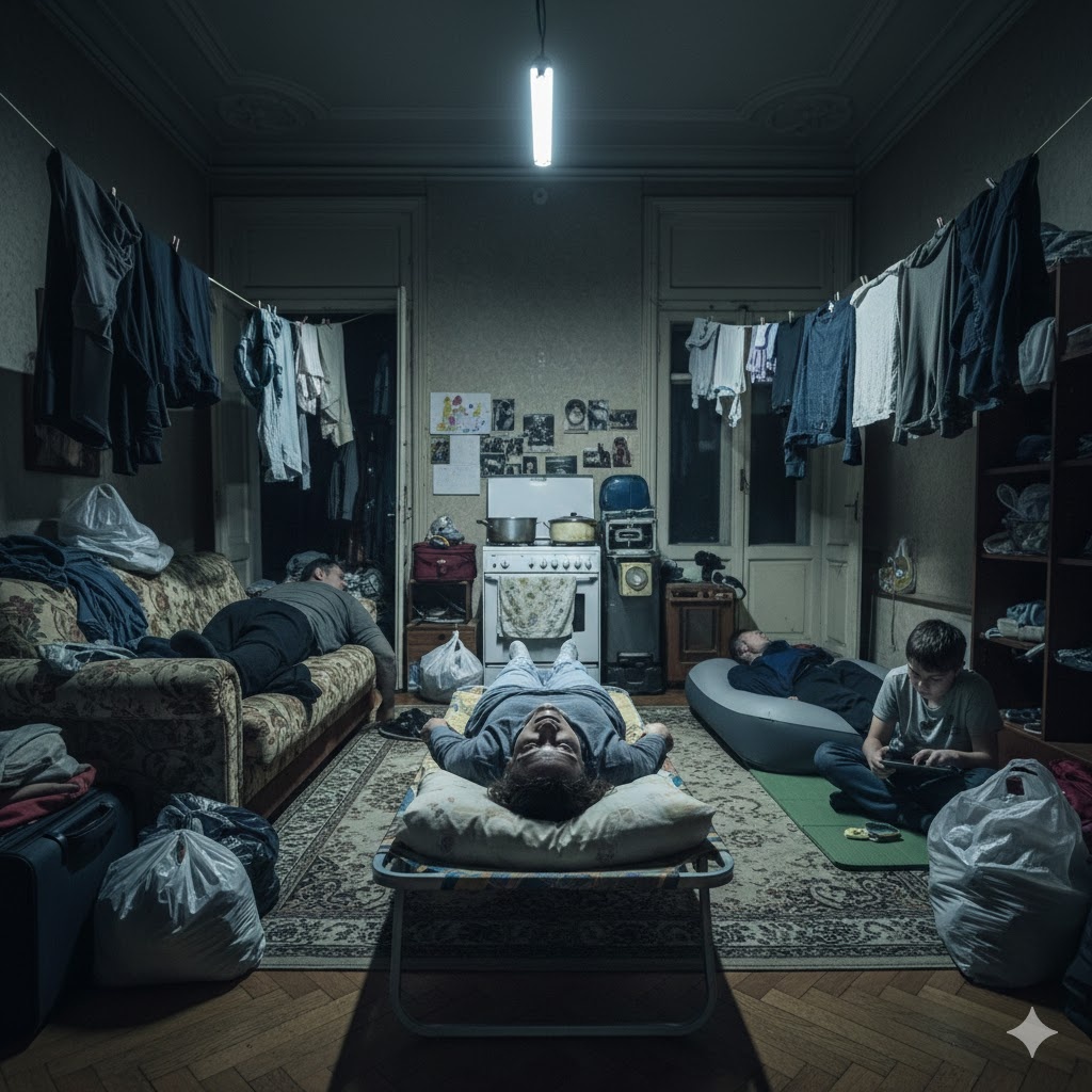 Утро в квартире Марины начиналось не с аромата свежемолотого кофе, а с резкого запаха жареного лука и тяжелого духа непроветренной комнаты. Марина открыла глаза и уставилась в потолок, где по старинной люстре ползла муха. Спина отозвалась ноющей болью — старая раскладушка, ставшая её «постелью» последние двенадцать месяцев, скрипнула под каждым движением.