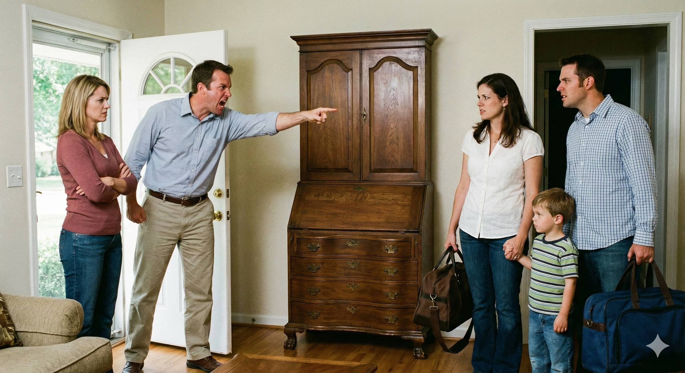 — Вон из моего дома! — рявкнул он так, что зазвенели стекла в серванте. — Забирайте сына, свои манатки и чтобы духу вашего здесь больше не было.
