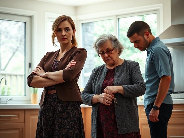 Светлана Петровна вошла на кухню, села за стол так, будто стол был её личным трибуной. Ладони положила ровно, спину выпрямила. Алексей встал чуть сбоку, привычно изображая мебель — дорогую, но бессловесную.