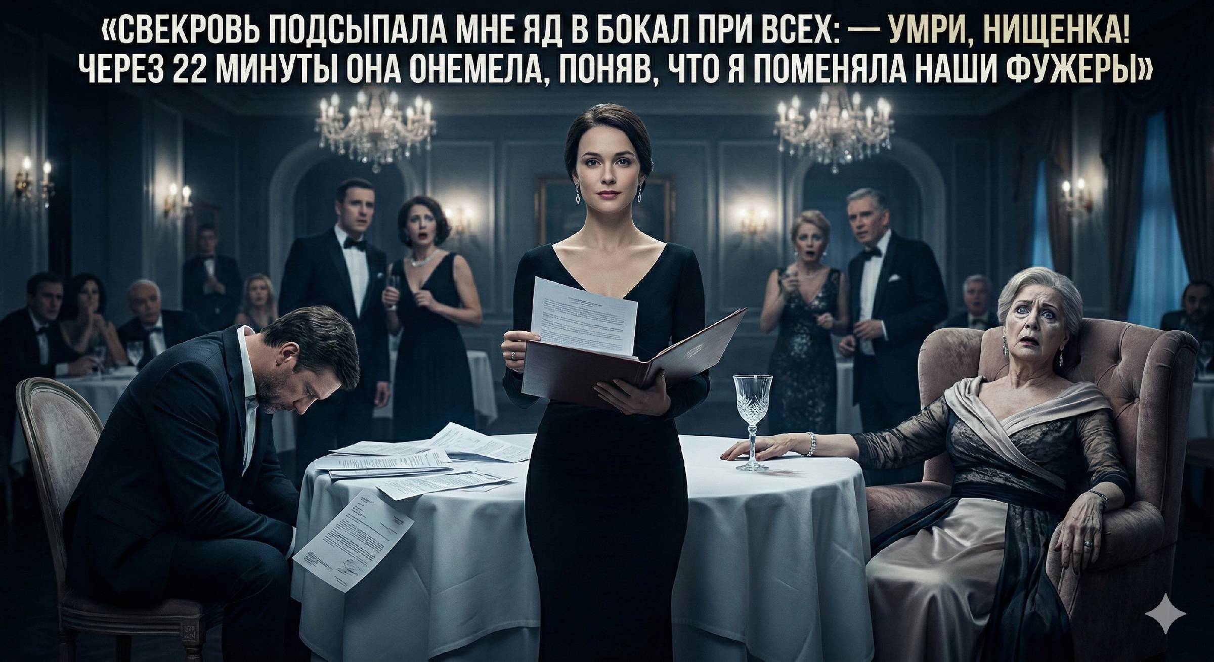 Анна поставила бокал на стол. Она чувствовала, как адреналин пульсирует в венах. Она знала, что у неё есть ровно двадцать две минуты до того, как яд начнет действовать в организме свекрови. Но это время ей было нужно не для побега. Ей нужно было, чтобы все присутствующие услышали то, что она приготовила в ответ. Она открыла свою сумочку и достала оттуда папку, которую Надежда Петровна приняла бы за обычный поздравительный адрес. Но это был не адрес. Это были результаты аудита швейцарских счетов Ланских, которые Анна, как профессиональный юрист-международник, тайно собирала последний год.