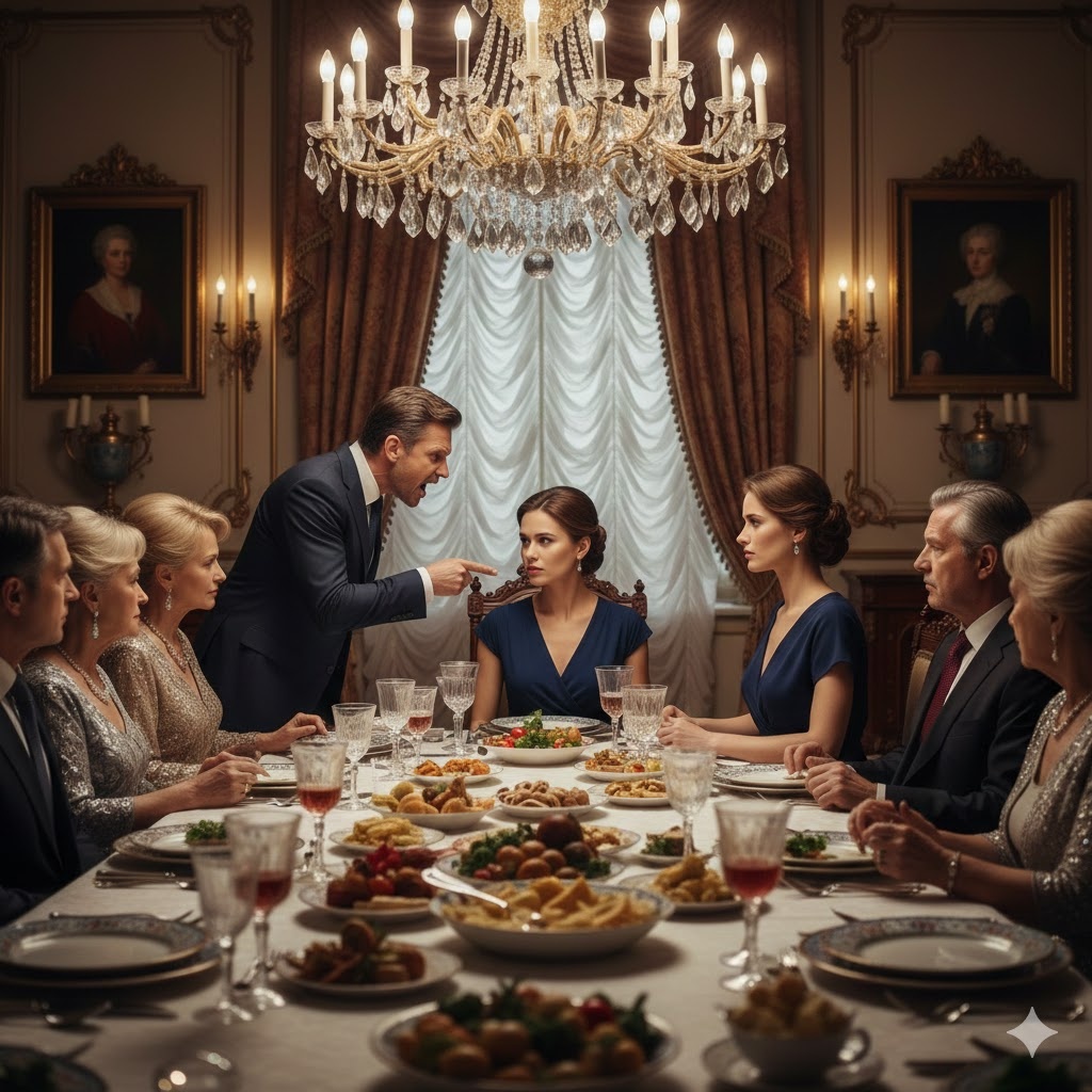 За столом воцарилась тишина. Родственники замерли, предвкушая шоу.