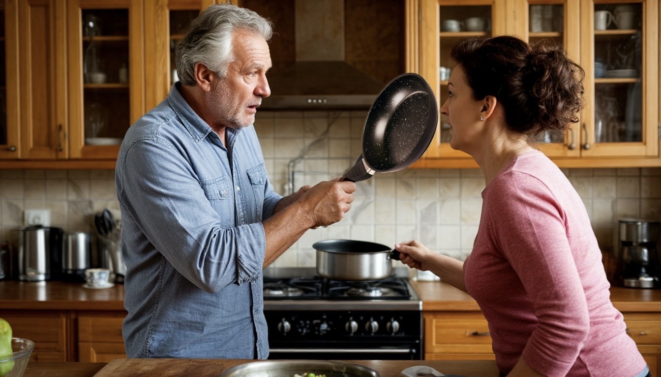 — Молчать! — рявкнул он, швыряя сковородку на плиту. — Надоело на тебя деньги тратить! Жрёшь, как не в себя, а толку никакого!