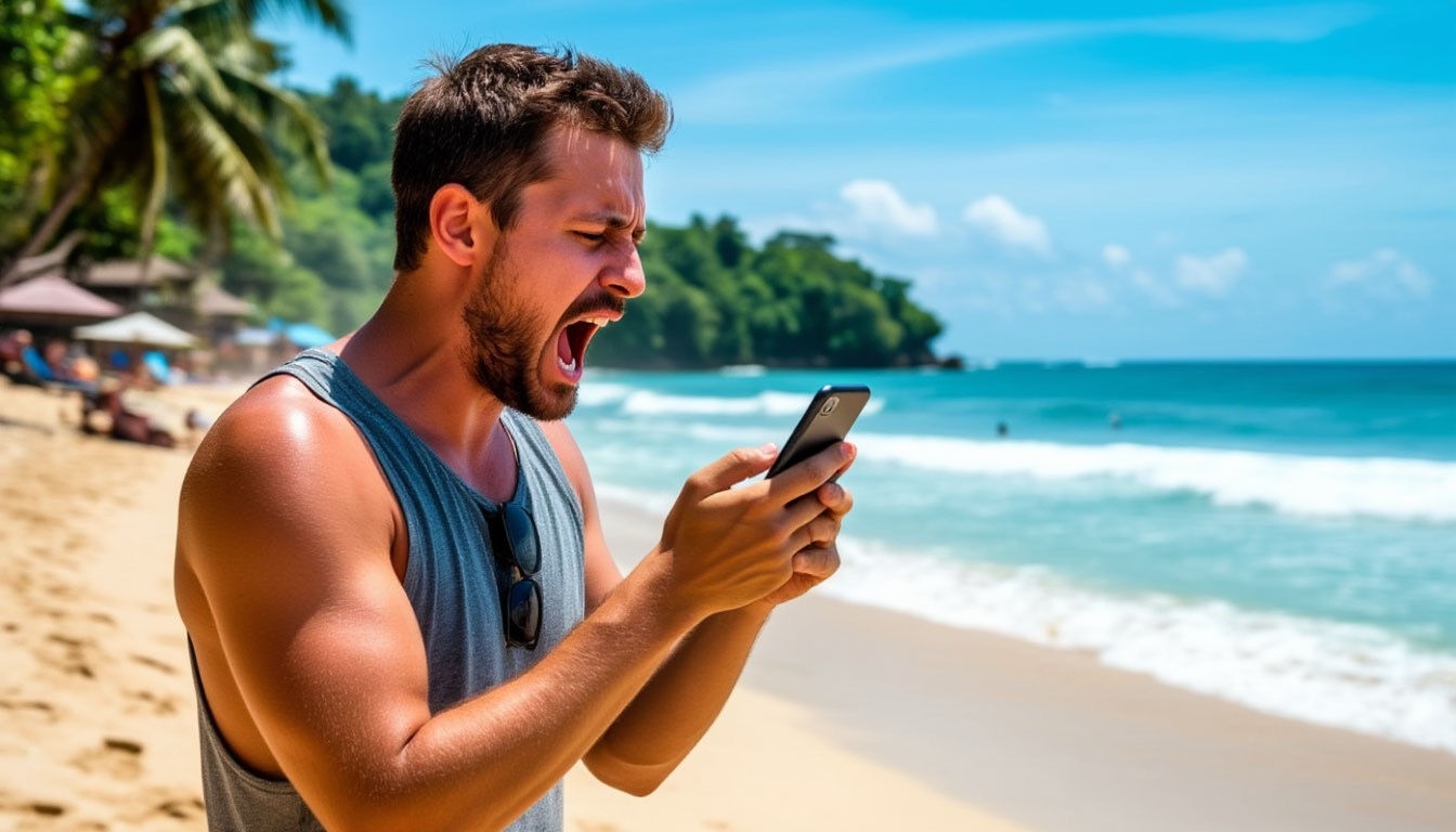 Марина нажала «принять». На экране появилось красное лицо мужа. Он явно стоял где-то на улице, за спиной виднелись пальмы.