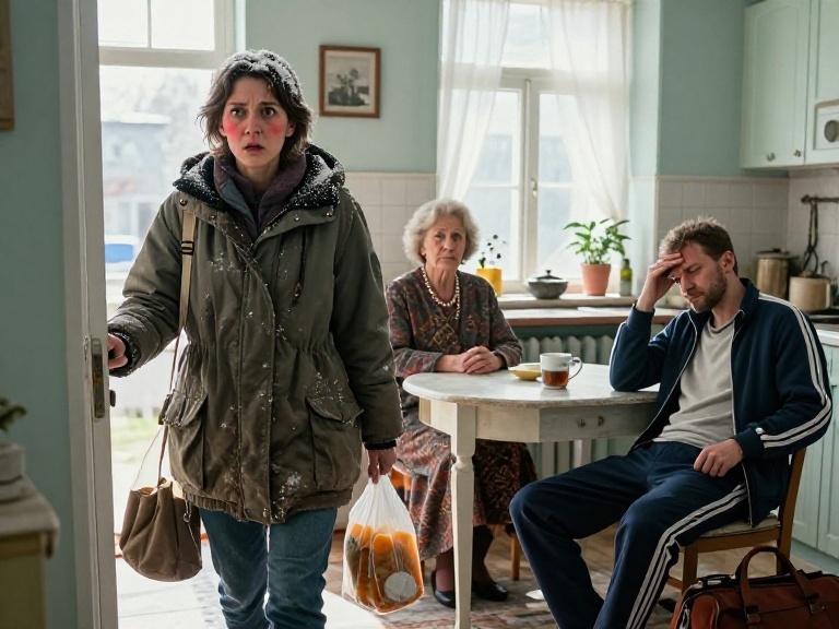Галина стояла в прихожей, в пуховике, с капюшоном, на котором налип мокрый январский снег. В руках — пакет с молоком и дешёвыми мандаринами, которые в январе пахнут не праздником, а привычкой. Под ногами — коврик с разводами от реагентов. В квартире было тепло, батареи шипели, как будто тоже нервничали.