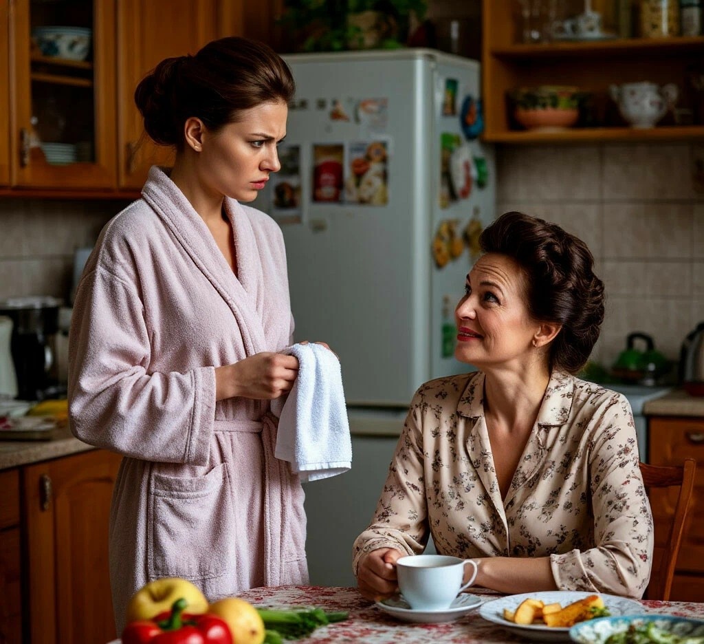 Лена молча открыла шкаф, достала чистое полотняное полотенце. Свекровь взяла его, оглядела.