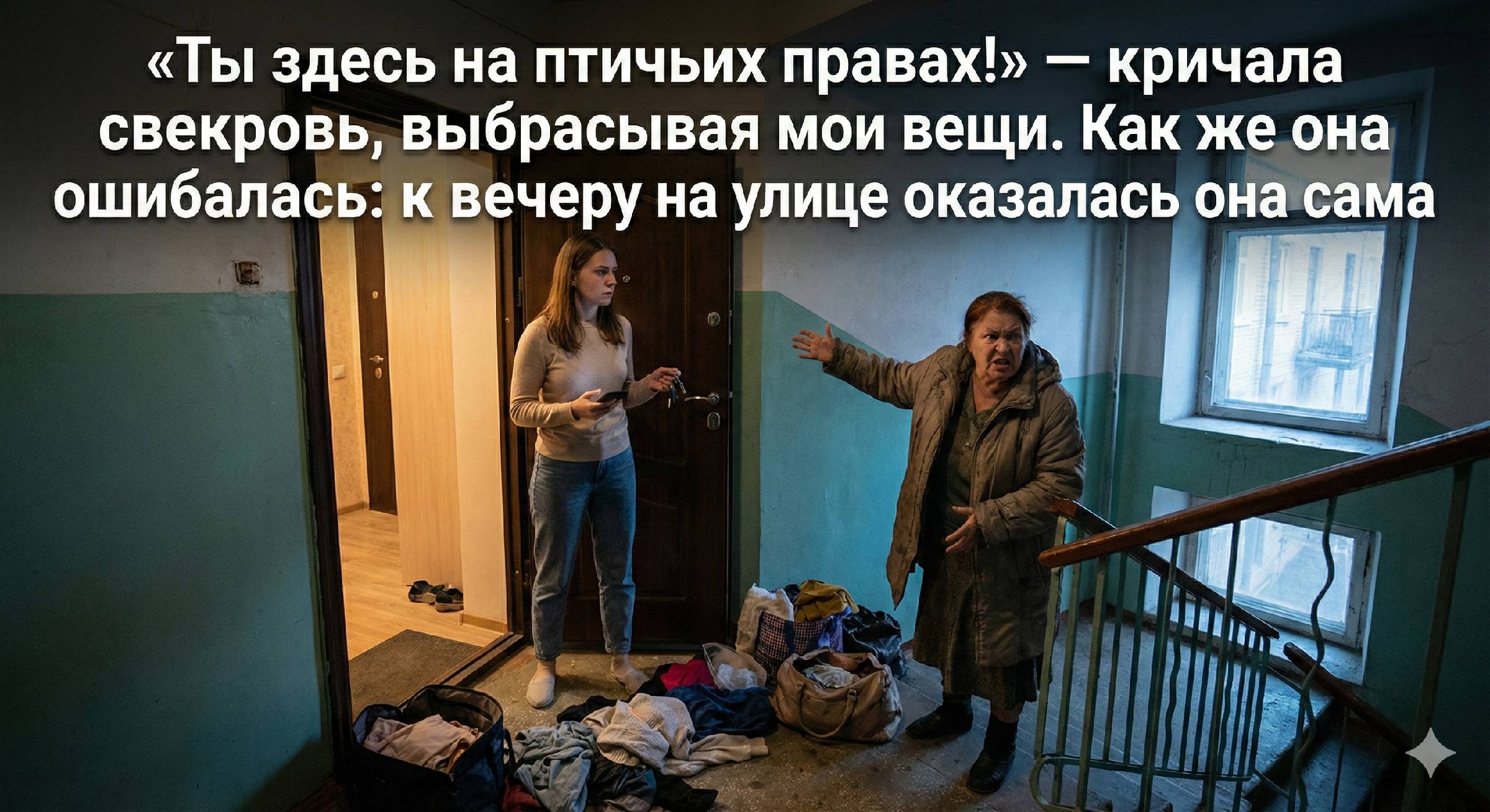 Пакет лопнул. Мои домашние футболки и старый уютный халат вывалились на грязный бетон подъезда. Из соседней квартиры выглянул заспанный Палыч, наш сосед. Он посмотрел на гору вещей, на беснующуюся Галину Петровну и быстро скрылся обратно.
