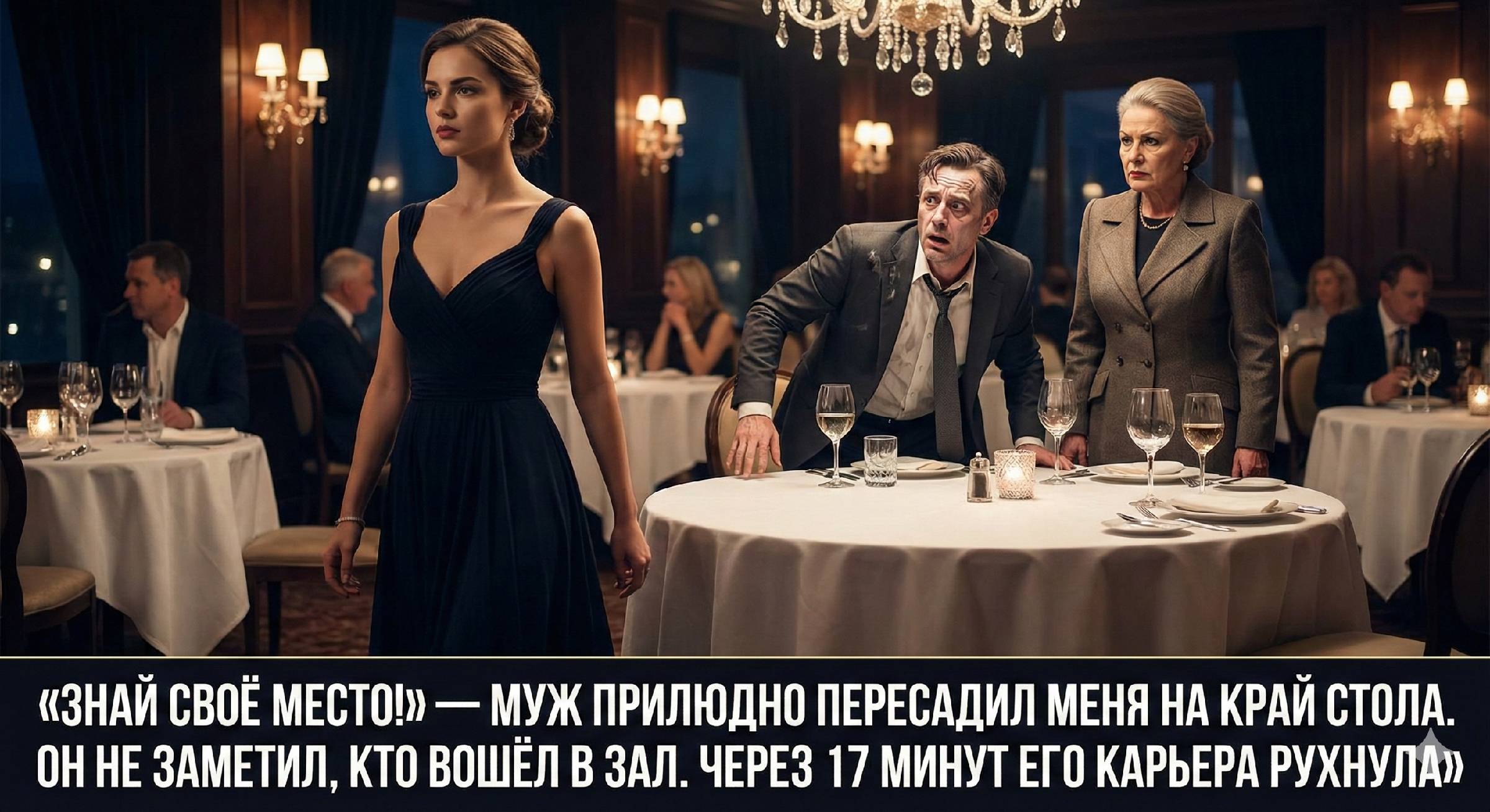 «Знай своё место!» — муж прилюдно пересадил меня на край стола. Он не заметил, кто вошёл в зал. Через 17 минут его карьера рухнула