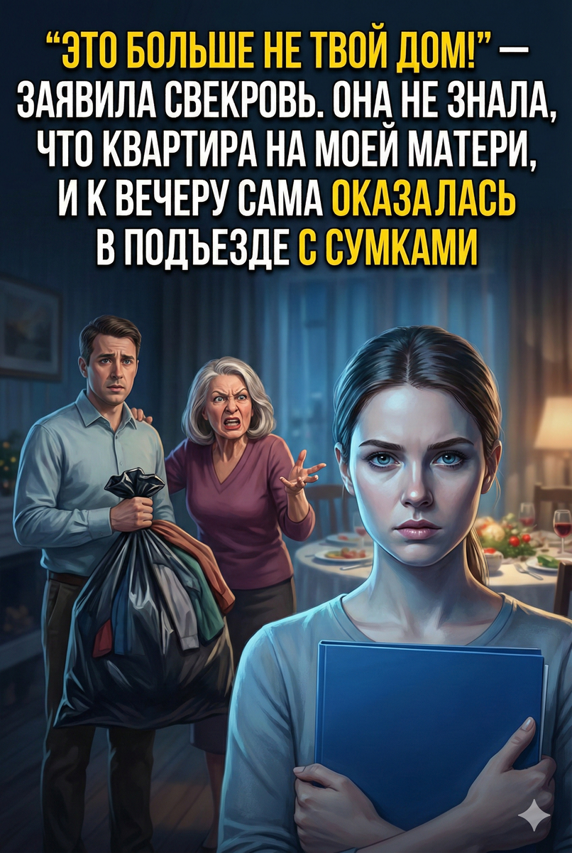 «Это больше не твой дом!» — заявила свекровь. Она не знала, что квартира на моей матери, и к вечеру сама оказалась в подъезде с сумками