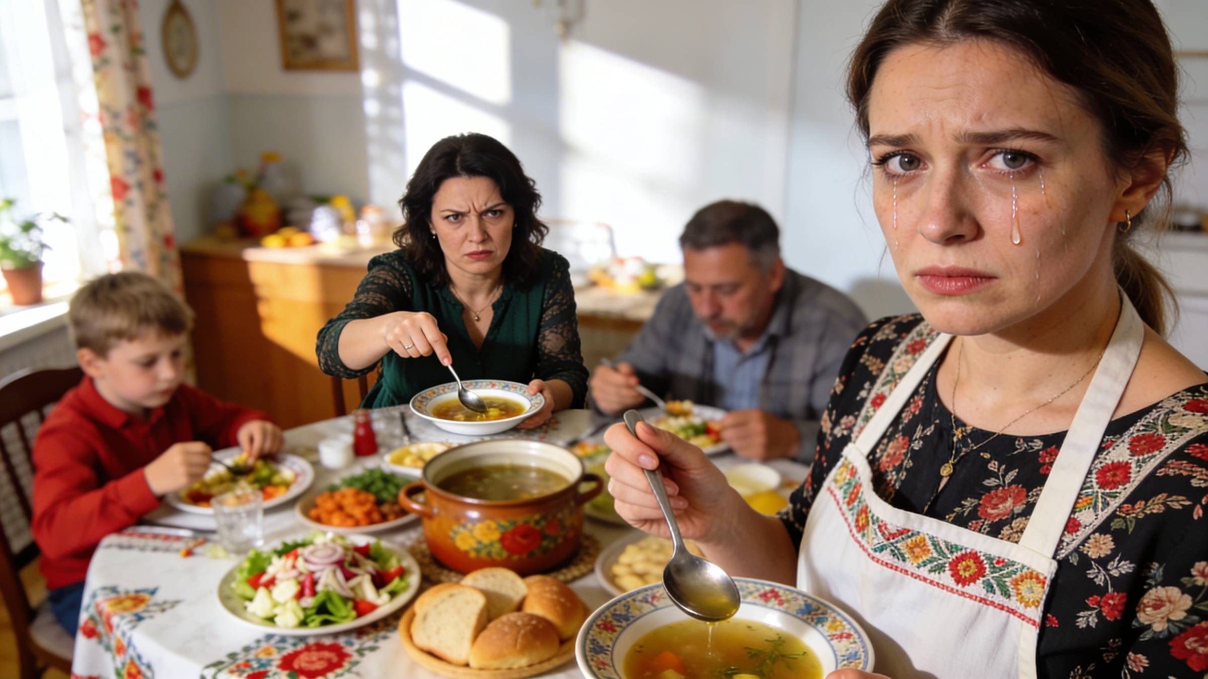 Люда терпела. Терпела год, второй, третий. Учитывала замечания – покупала борщовую свёклу у Ашота на рынке, процеживала бульон через двойную марлю, выбирала яблоки послаще. Но Жанна всегда находила новый повод. Если бульон был прозрачным – значит, ненаваристый. Если наваристый – значит, жирный. Если свёкла рубиновая – значит, переварена. Угодить Жанне было невозможно, и Люда наконец поняла: дело не в еде.