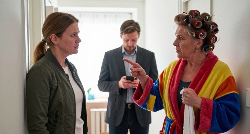 Людмила Ивановна выглянула из кухни — в Верином халате, который она любила именно за то, что он «не нарядный». На голове — бигуди, на лице — выражение хозяйки, которую отвлекают мелочи. В руках — Верино полотенце, как флаг.