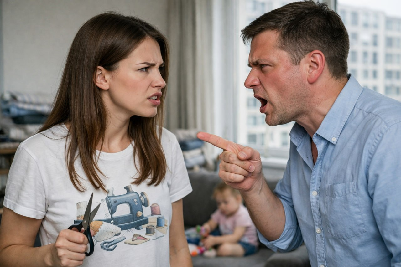 — Поля играет? — он обвёл взглядом комнату. — Это склад тряпок, а не детская! Машинка, нитки, рулоны эти… Нормальному ребёнку нормальная комната нужна, а не угол между выкройками!