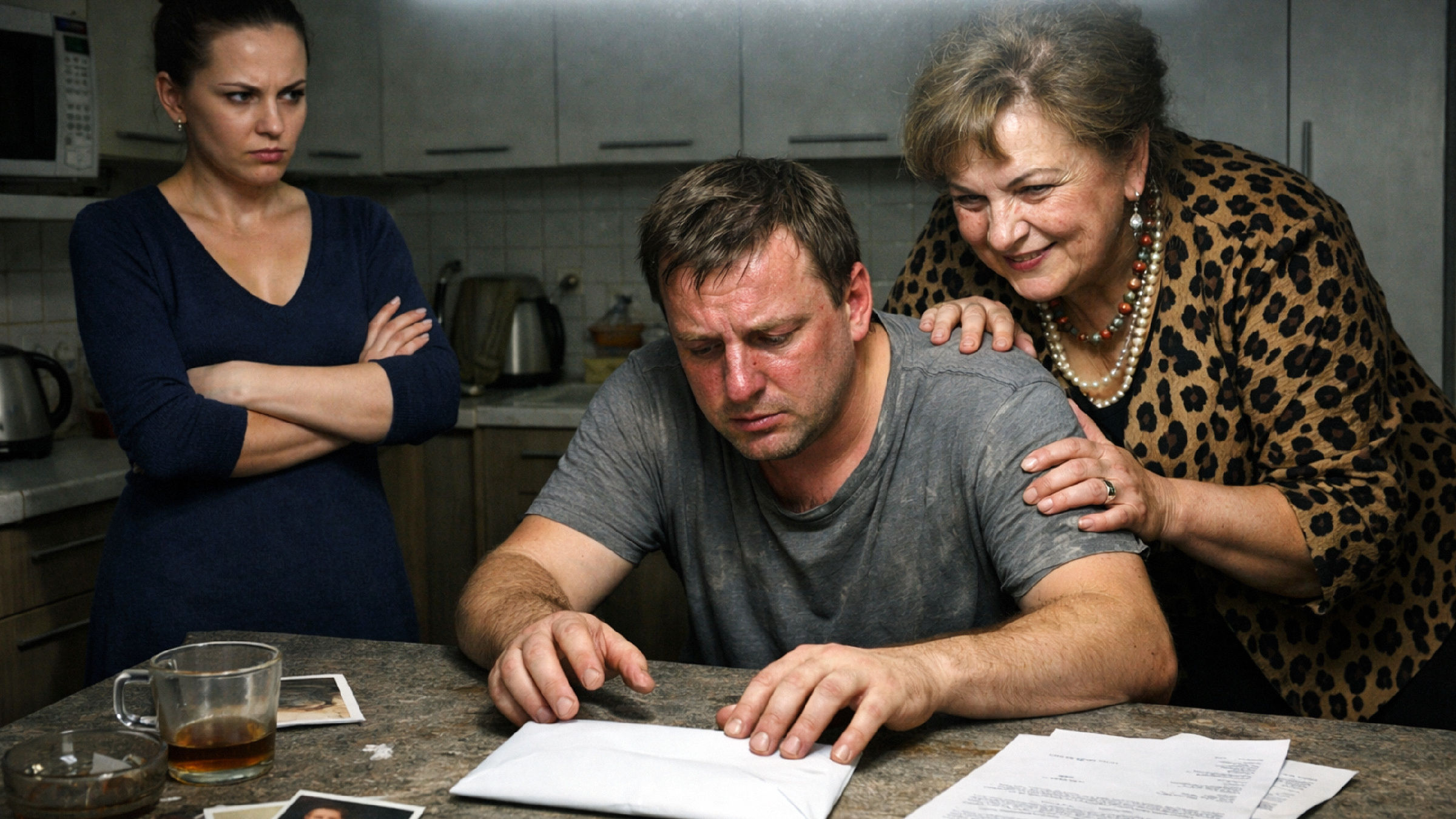 Сергей сидел на кухне, нервно крутил в руках чашку, Галина Петровна стояла за его спиной, как коршун, Алина положила на стол запечатанный конверт из клиники.