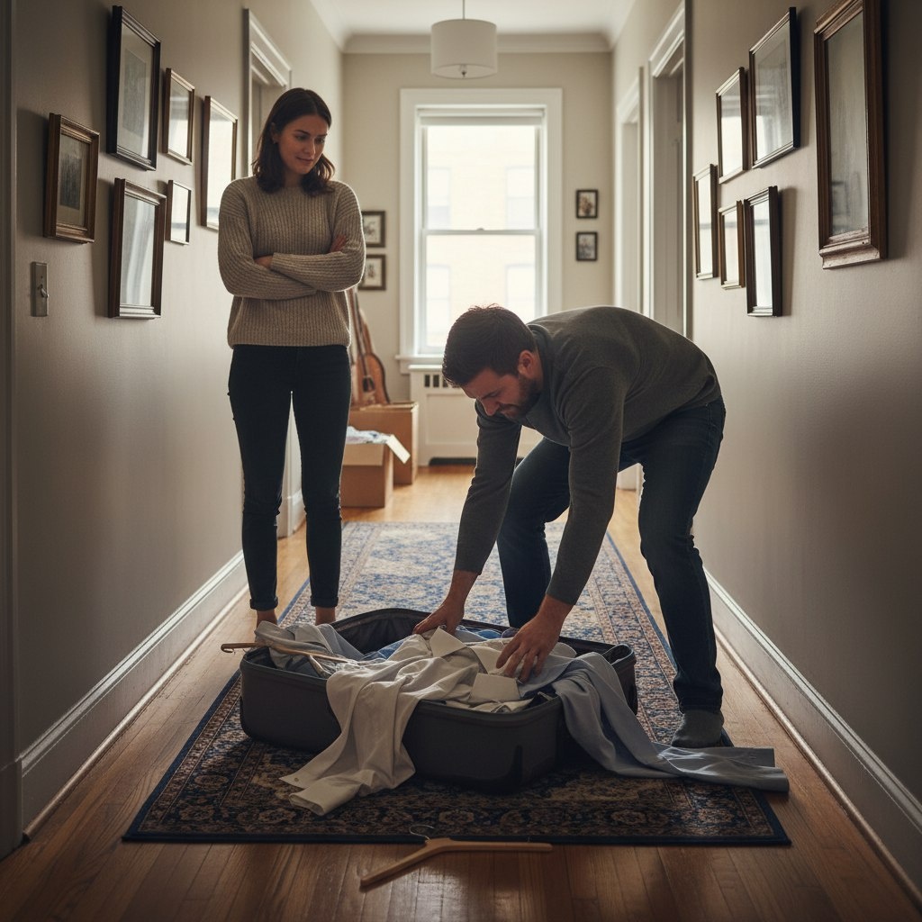 Я стояла в коридоре нашей — нет, моей — квартиры и смотрела, как Костя запихивает в чемодан рубашки, даже не снимая их с вешалок. Пластиковые крючки торчали из-под молнии, как рёбра какого-то дохлого зверя.