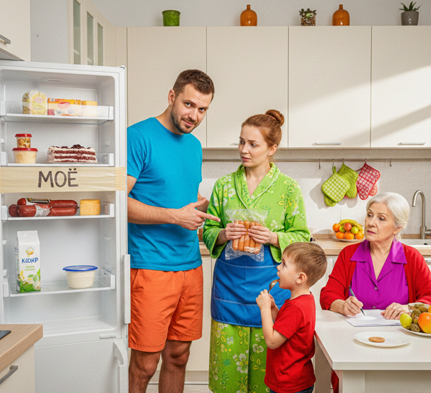 Полина медленно выпрямилась, вытирая руки о фартук. Она посмотрела на мужа так, словно у него на лбу внезапно выросла третья рука. Сергей же, не замечая её взгляда, бережно водрузил сосиски на «свою» территорию в холодильнике, которую он с утра обклеил малярным скотчем.