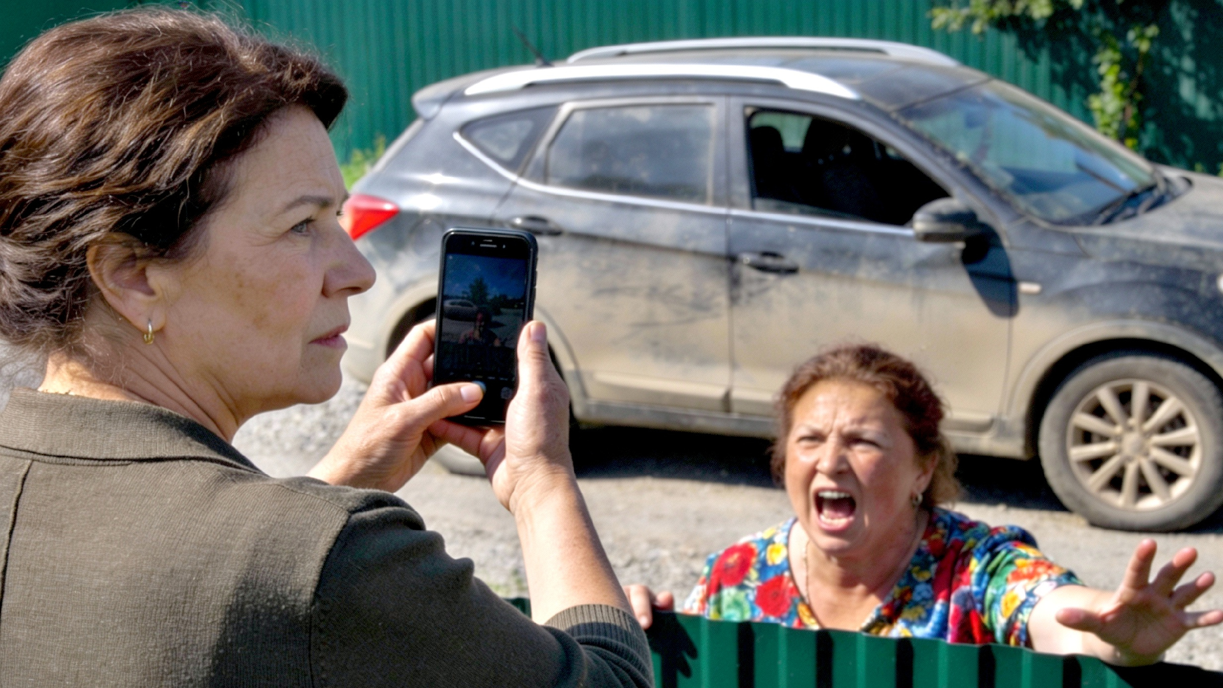 Андрей дернул жену за рукав, почти силой запихал в машину. Двери хлопнули. Мотор взревел, и кроссовер, подняв облако пыли, рванул прочь по грунтовке.