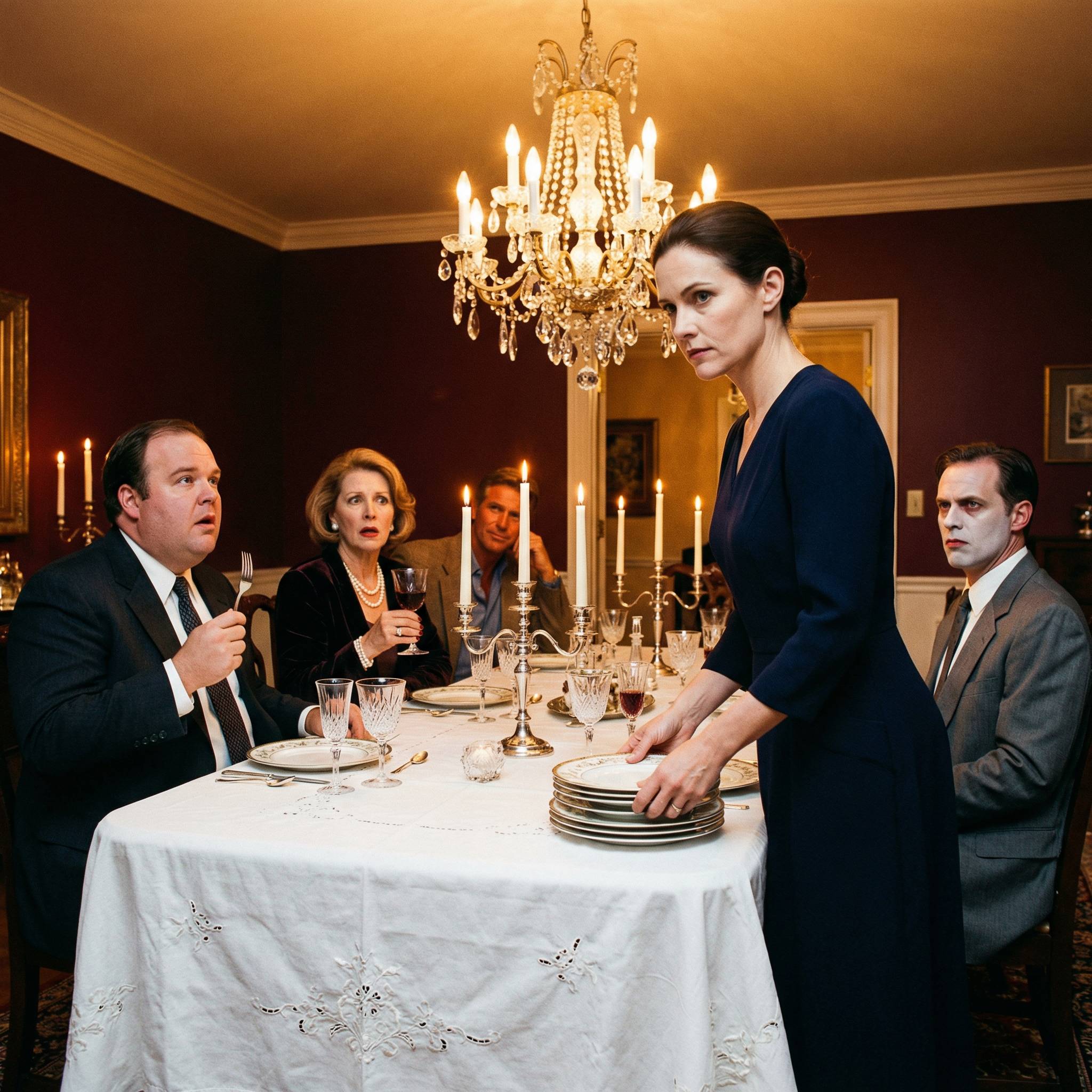 Виталий попытался улыбнуться — вышло криво. Кристина смотрела в скатерть. Тамара встала молча, поправила жемчуг и бросила на Елену взгляд, в котором смешались обида и что-то, чему она сама, вероятно, не нашла бы названия.