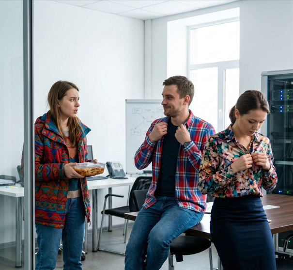 Таисия стояла на пороге переговорной комнаты, сжимая в руке пластиковый контейнер с домашней лазаньей. Она приехала в офис к жениху сюрпризом, чтобы вместе пообедать. Сюрприз удался. Только не для него. Денис сидел на краю стола, а его коллега Инна, суетливо отворачиваясь, поправляла воротничок блузки и прическу.