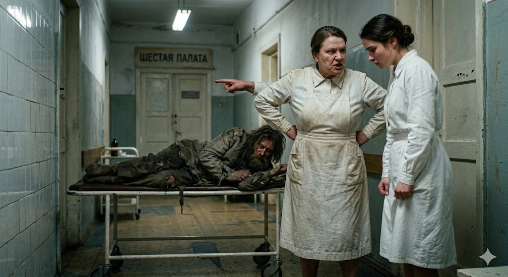 Когда девушка переступила порог шестой палаты, в нос ударил резкий запах сырости, застарелого пота и уличной грязи. На койке в углу, сжавшись в комок, лежал мужчина. Его одежда превратилась в жалкие лохмотья, волосы спутались в сплошной колтун, а лицо скрывала густая, неопрятная борода. Он дрожал, то ли от холода, то ли от сильного жара.