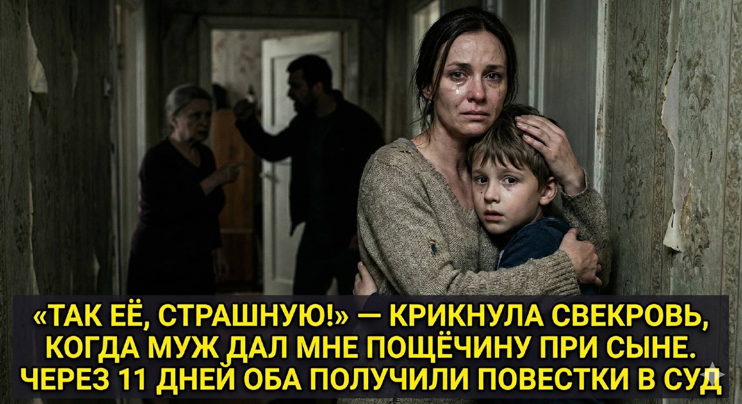 Я прошла мимо них, накинула куртку прямо поверх рабочего свитера, взяла сумку и вывела сына в подъезд. Щёку жгло огнём, но внутри разливался странный, ледяной покой. Тревога, которая душила меня годами, заставляя извиняться даже за чужие ошибки, внезапно исчезла. Мне больше не нужно было бояться, что он сорвётся и устроит скандал. Он уже сорвался. Худшее произошло.
