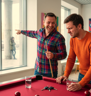 Гулкий удар по белому шару эхом отскочил от деревянных панелей закрытого бильярдного клуба. В воздухе тяжело висел запах крепких напитков и дорогого табака. Максим молча крутил в руках стакан с минералкой, глядя, как шар лениво закатывается в лузу.