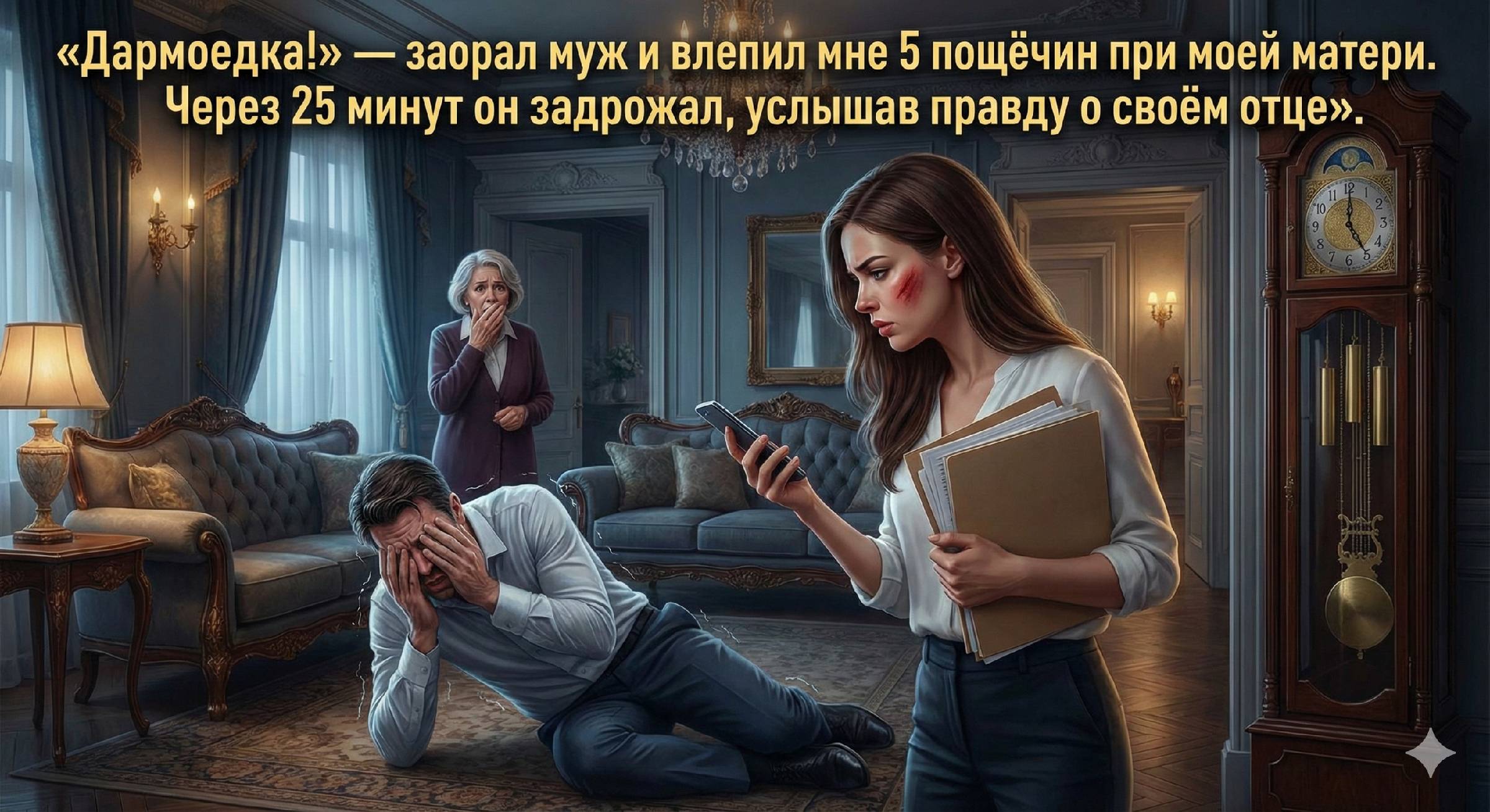 Двадцать пять минут — это много, если ждёшь результатов теста на беременность, и ничтожно мало, если ждёшь краха своей жизни. Я сидела на диване, приложив к горящей щеке пакет с замороженной фасолью. Мама сидела рядом, её плечи мелко вздрагивали, а в глазах застыл первобытный ужас перед человеком, который только что разрушил образ «идеальной семьи».