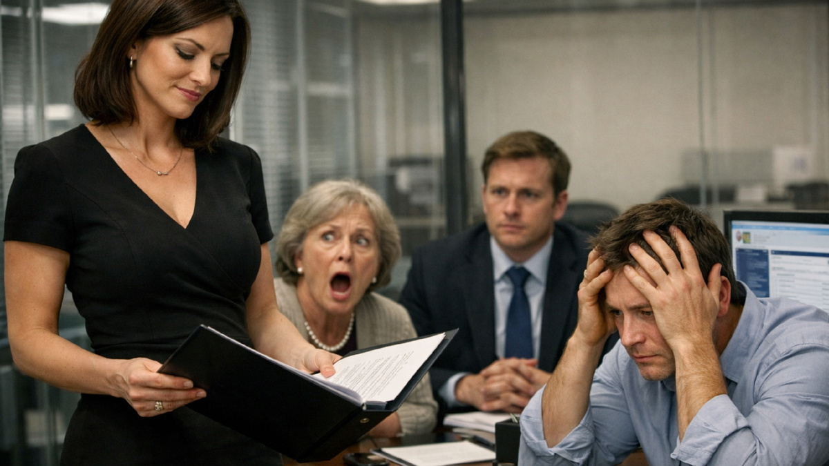 В этот момент стеклянная дверь кабинета тихо открылась, и вошла Надя. Спокойная, в строгом платье, с той самой картонной папкой в руках.