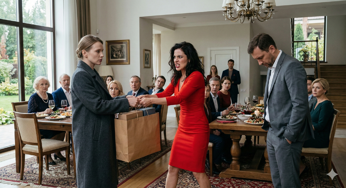 В комнате повисла тишина. Родственники мужа — дяди, тети, двоюродные братья — замерли с вилками в руках. Никто не сказал ни слова. Олег стоял рядом и внимательно изучал носки своих ботинок.