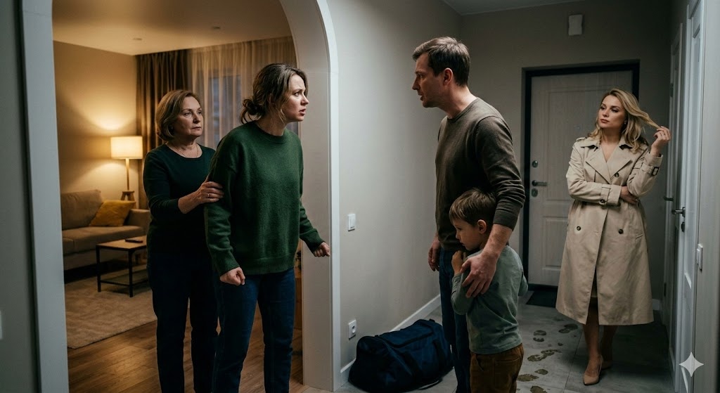 Марина стояла в коридоре, крепко сжимая руку начавшего хныкать сына, и её лицо выражало крайнюю степень растерянности и злобы. Её гениальный план, который они с Игорем так ловко придумали по телефону (пожить пару недель на всём готовом в шикарной дизайнерской квартире в центре, пока в её убитой хрущевке на окраине бесплатно орудуют сантехники из ЖЭКа), с оглушительным треском провалился.