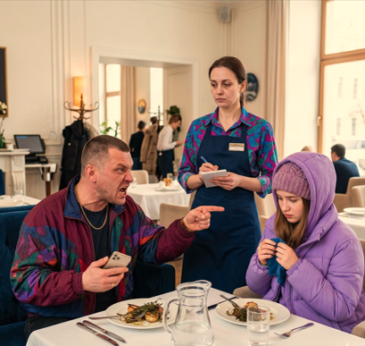 — Ты… — прошипел он, резко вскакивая. Стол опасно покачнулся, тарелки жалобно звякнули друг о друга. — Да ты что несешь, нахалка?! Менеджера! Бегом сюда!