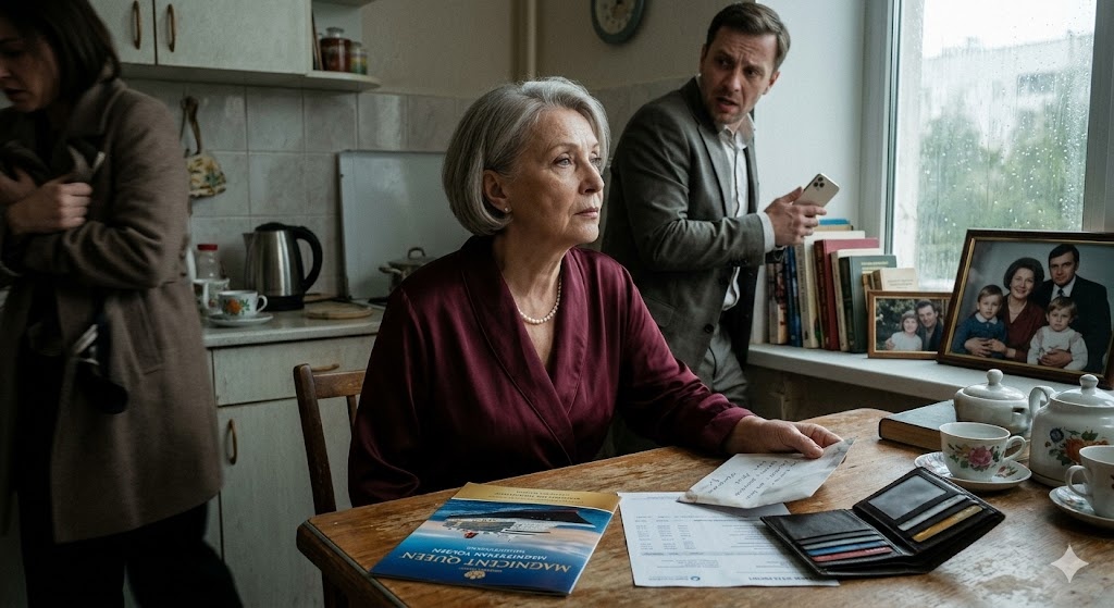 — А я? — вторила Кристина. — Я останусь без диплома! Как ты могла потратить всё на… на какой-то отпуск? В твоём возрасте?!