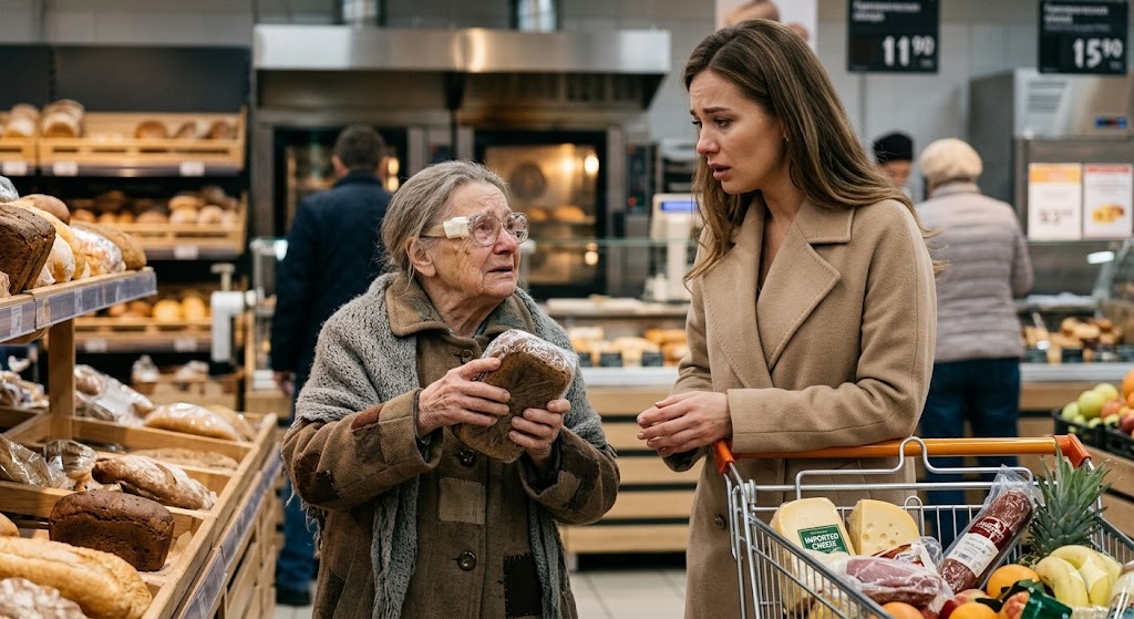 Старушка обернулась. В ее выцветших, по-детски ясных голубых глазах стояли крупные, как горошины, слезы. Они не катились по щекам, а просто застыли в уголках глаз, отражая безжалостный неоновый свет ламп супермаркета. Она сделала робкий, почти невесомый шаг навстречу Марине. Пряча взгляд, комкая в руках старенький полиэтиленовый пакет, старушка тихо, срывающимся шепотом попросила: