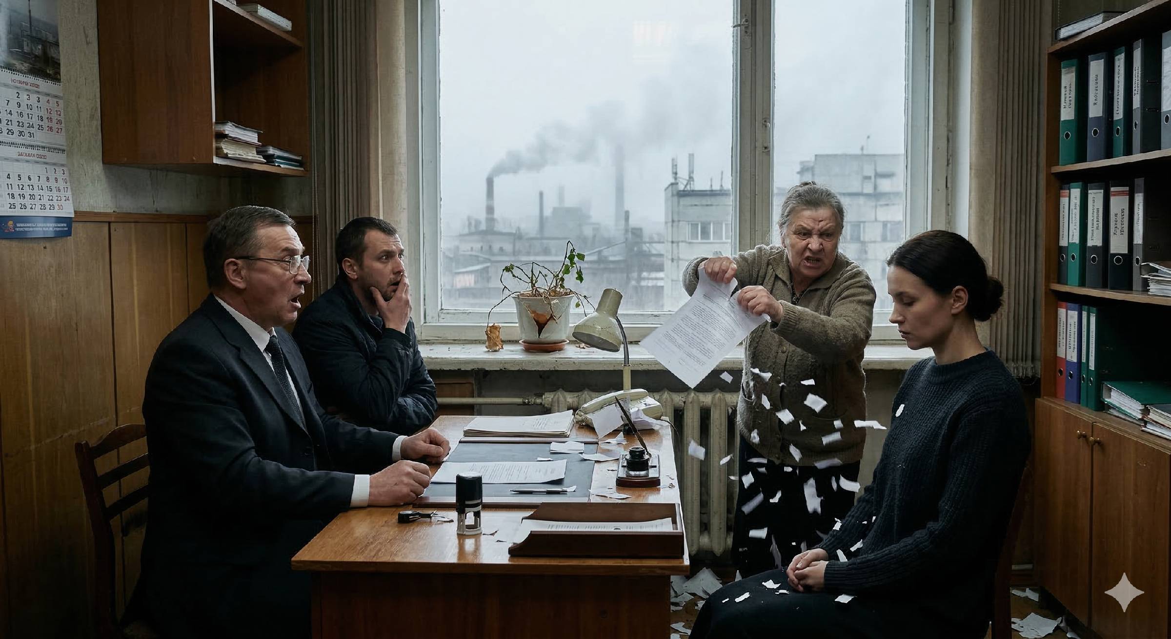 10:42. В кабинете нотариуса было душно. Окно было закрыто, за стеклом Братск задыхался в промышленном тумане. Я смотрела на свои руки и думала о том, что вчера забыла купить порошок. Странная мысль в момент крушения жизни, но мой мозг всегда так работал — цеплялся за быт, когда реальность становилась слишком острой.