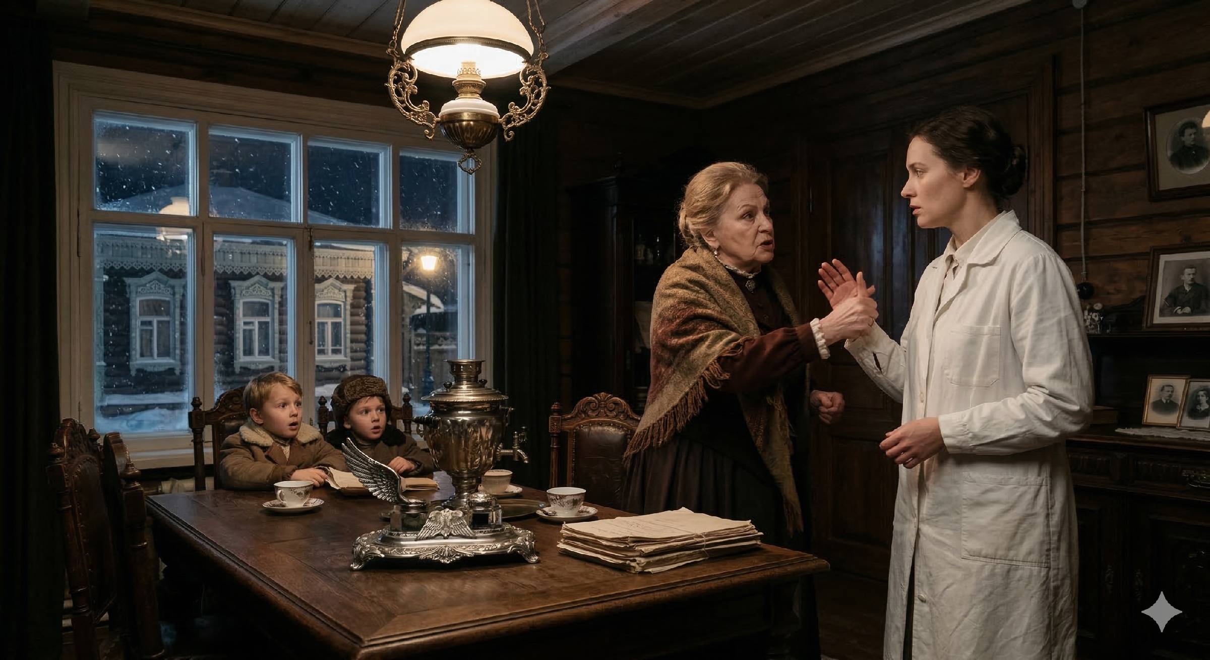Чернильница, тяжелая, почерневшая от времени и пренебрежения, звякнула о дубовую столешницу. Мои дети — пятилетний Митя и семилетняя Лиза — замерли, не донеся ложки с остывающим супом до рта. В их глазах застыла та особая тишина, которая бывает у детей, вынужденных жить в одном пространстве с «заслуженным работником культуры», чья культура заканчивается там, где начинаются личные границы других людей.