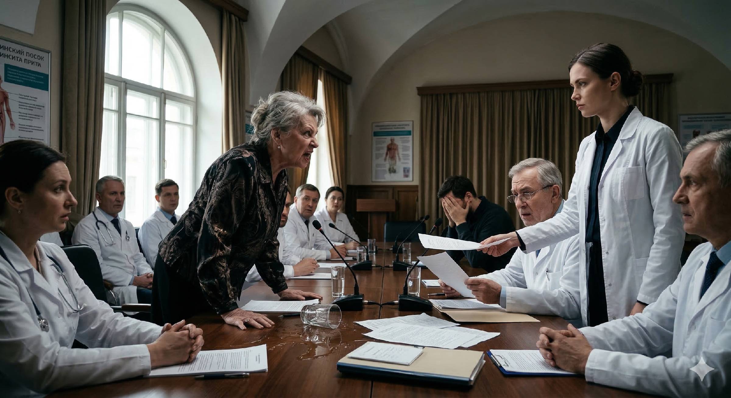 В зале повисла такая тишина, что было слышно, как гудит старый кондиционер под потолком. Одиннадцать врачей — цвет медицины города — одновременно подались вперед. Борис Аркадьевич несколько раз перечитал заключение, потом посмотрел на Тамару Игоревну.