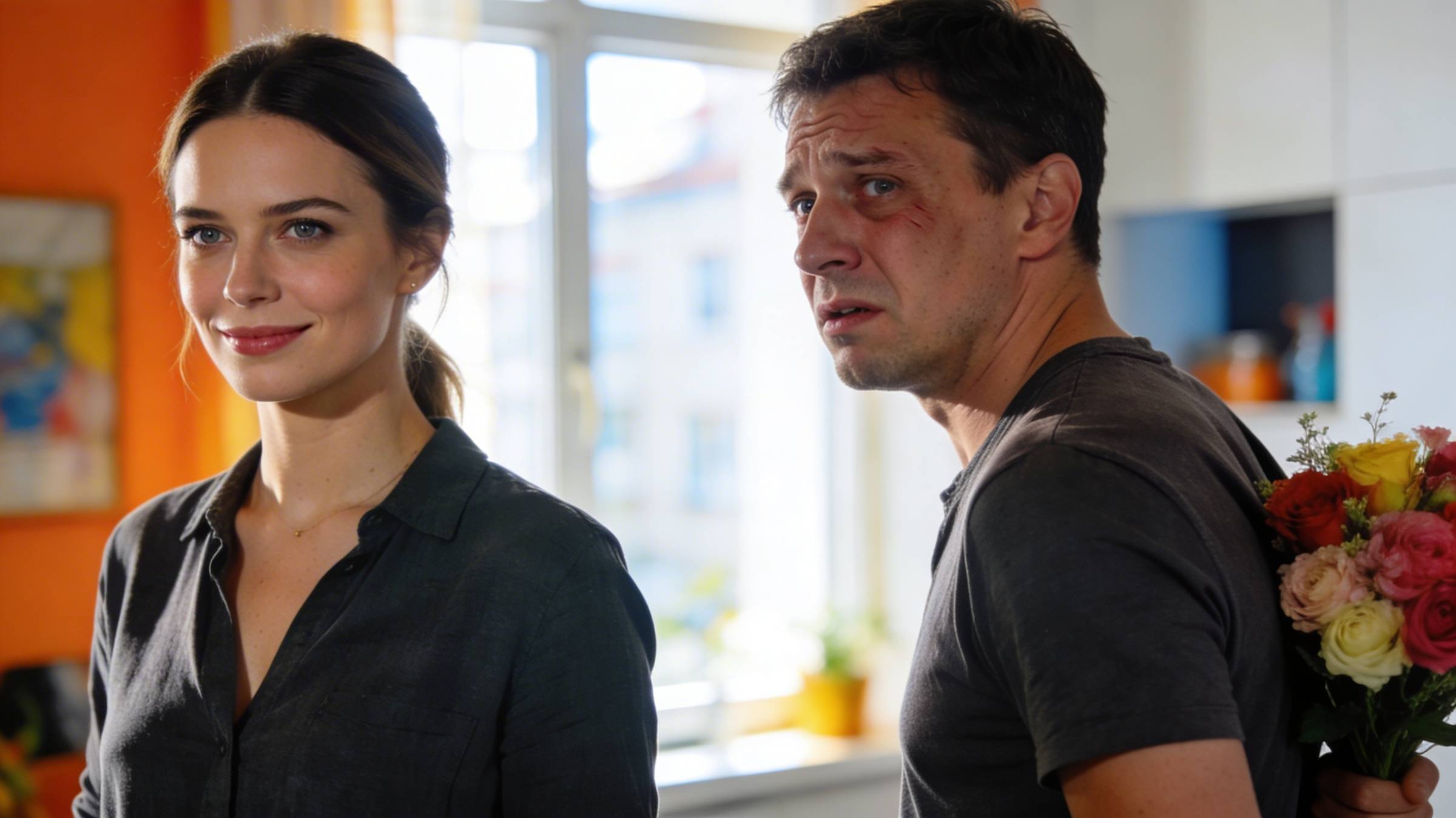 Вечером, когда Анна сидела в комнате за компьютером, в дверь тихо постучали. Виктор вошел несмело, пряча что-то за спиной. Он подошел к столу и положил перед женой большую коробку ее любимых конфет ручной работы и букет свежих тюльпанов.