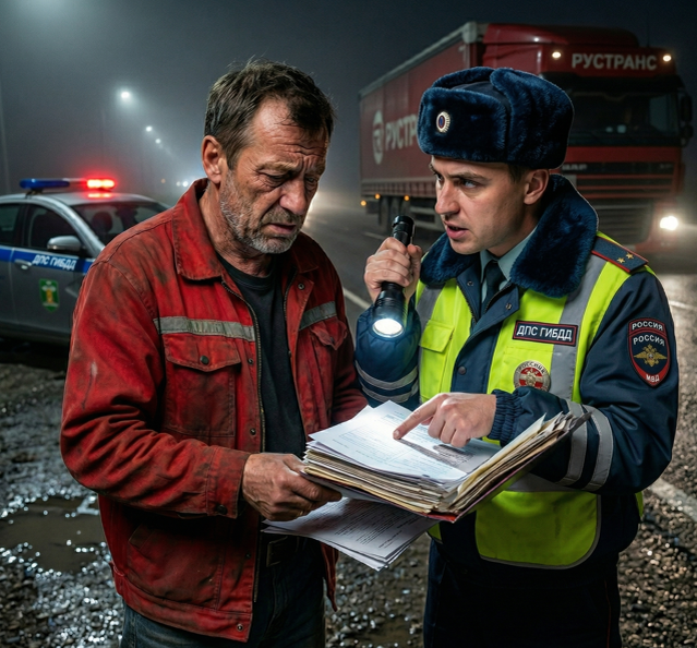 — Товарищ майор… ну какой перевес? Я на весовой рамке пару сотен километров назад проходил, всё чисто было. А документы… мне логисты папку сунули на базе, я кабину закрыл и поехал. У меня скоропортящийся товар, сроки горят. Хозяин меня без копейки на улицу выставит, если фура встанет.