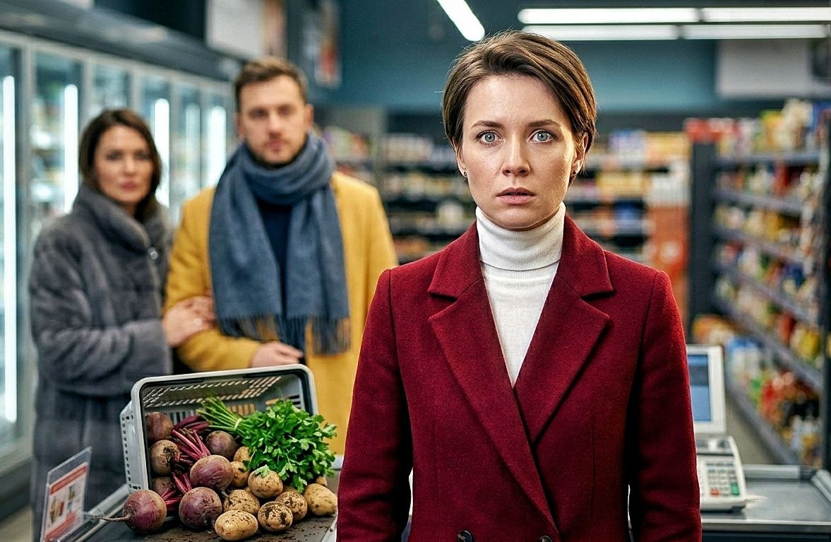 Корзина с продуктами выпала из рук Эльвиры и опрокинулась прямо у кассы, рассыпав по полу свёклу, картофель и пучок петрушки.