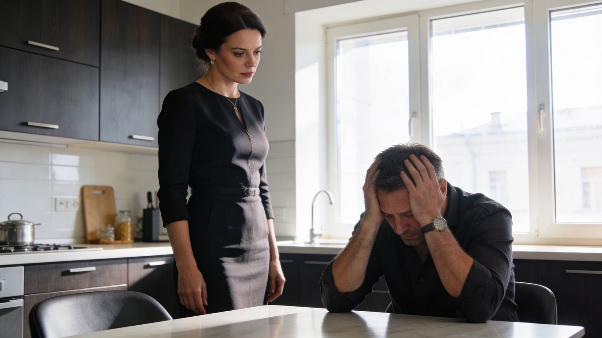 Игорь сидел на табуретке, вальяжно откинувшись назад и скрестив руки на груди. В его позе читалась странная смесь показной уверенности и затаенного страха. Он смотрел куда угодно: на узор обоев, на гудящий холодильник, на собственные тапочки, но только не в глаза жене.