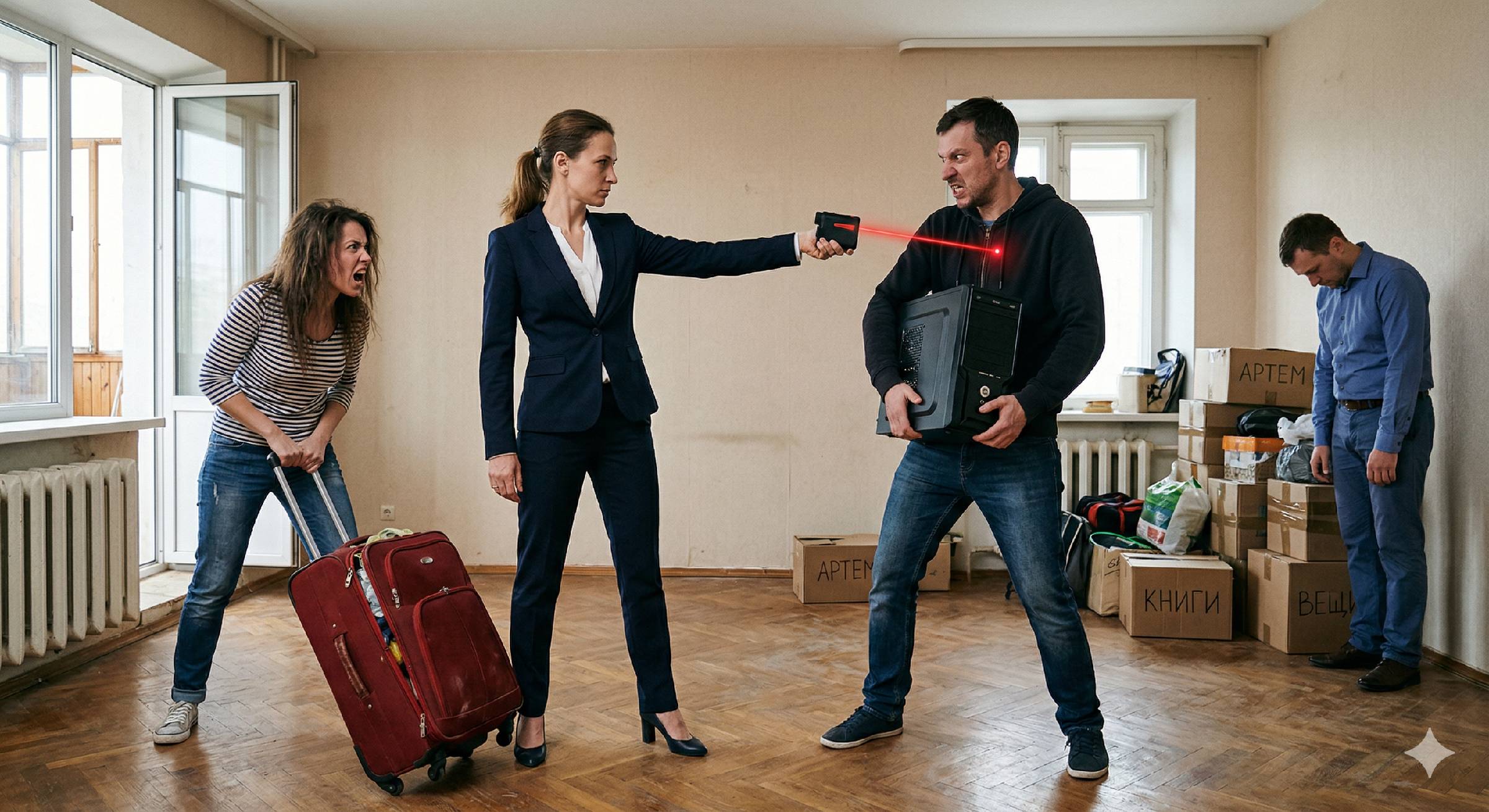 Следующие пять минут превратились в ускоренную кинохронику. Инна металась по коридору, кидая в сумки детские игрушки и Пашкины кроссовки. Валера, матерясь под нос, волок свои узлы к лифту. Они больше не кричали о «родственной душе». Они бежали. Бежали от красной точки моего дальномера, которая казалась им лазерным прицелом правосудия.