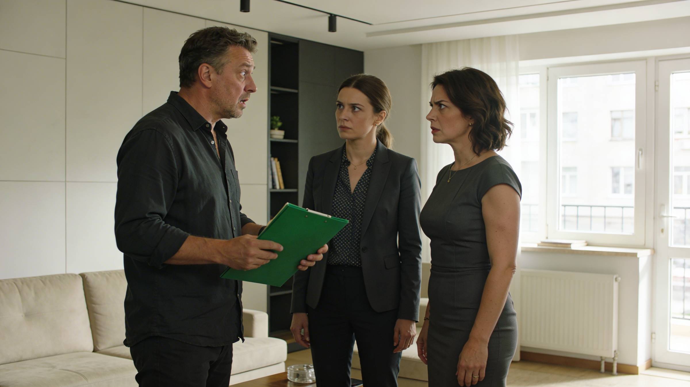 Антон приехал через сорок минут. Он влетел в квартиру запыхавшийся, с тревогой на лице. В гостиной сидела Рита, демонстративно вытирая несуществующие слезы бумажной салфеткой. На кухне, прямая как струна, сидела Елена, положив перед собой на стол зеленую папку и паспорт мужа.